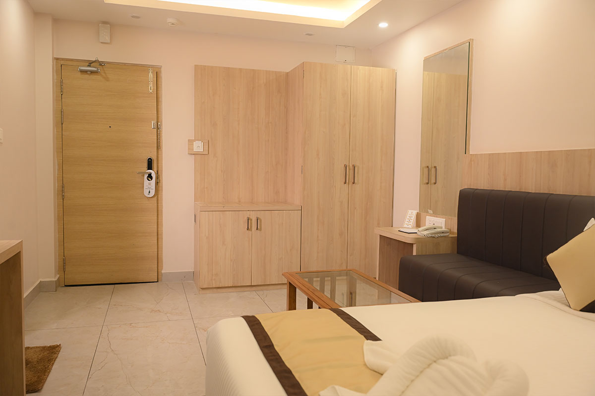 - we can only accept 4 guests for suite rooms and 3 guests for our deluxe and standard category rooms.