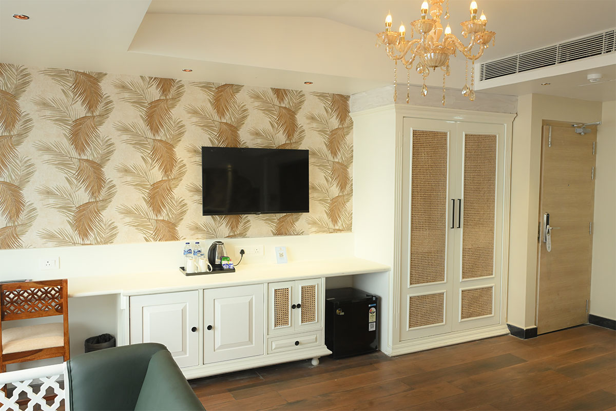 • Every room has air-conditioner, refrigerator, TV, Telephone, Tea / Coffee arrangements.